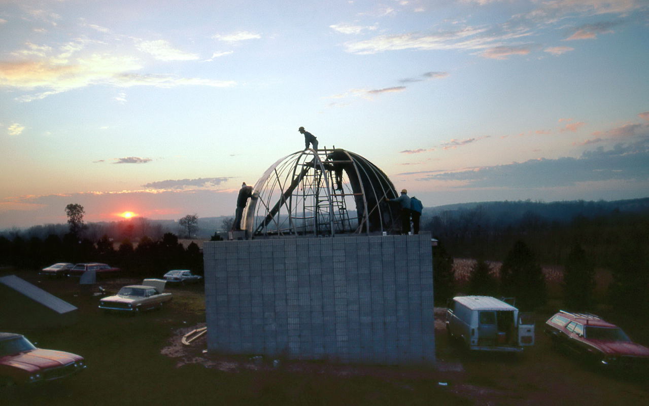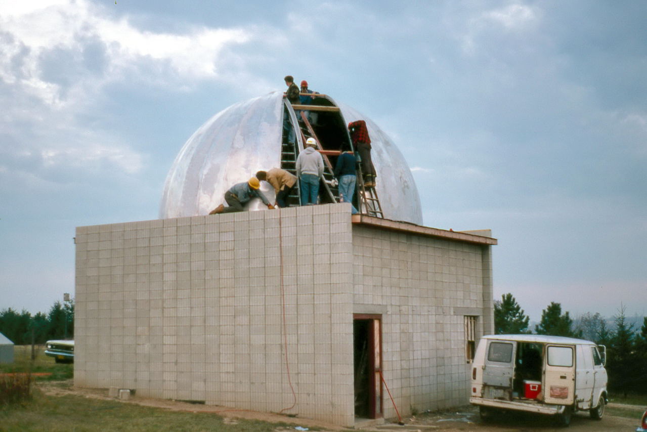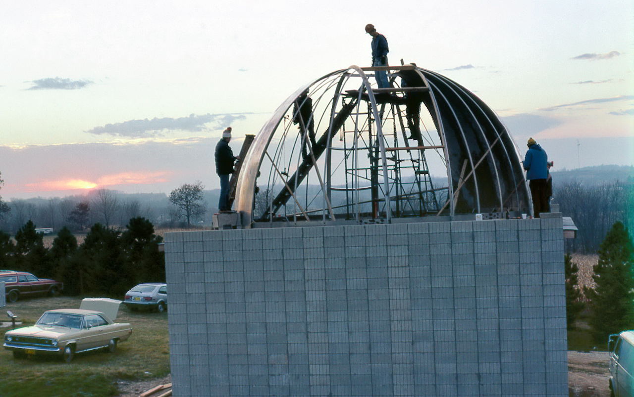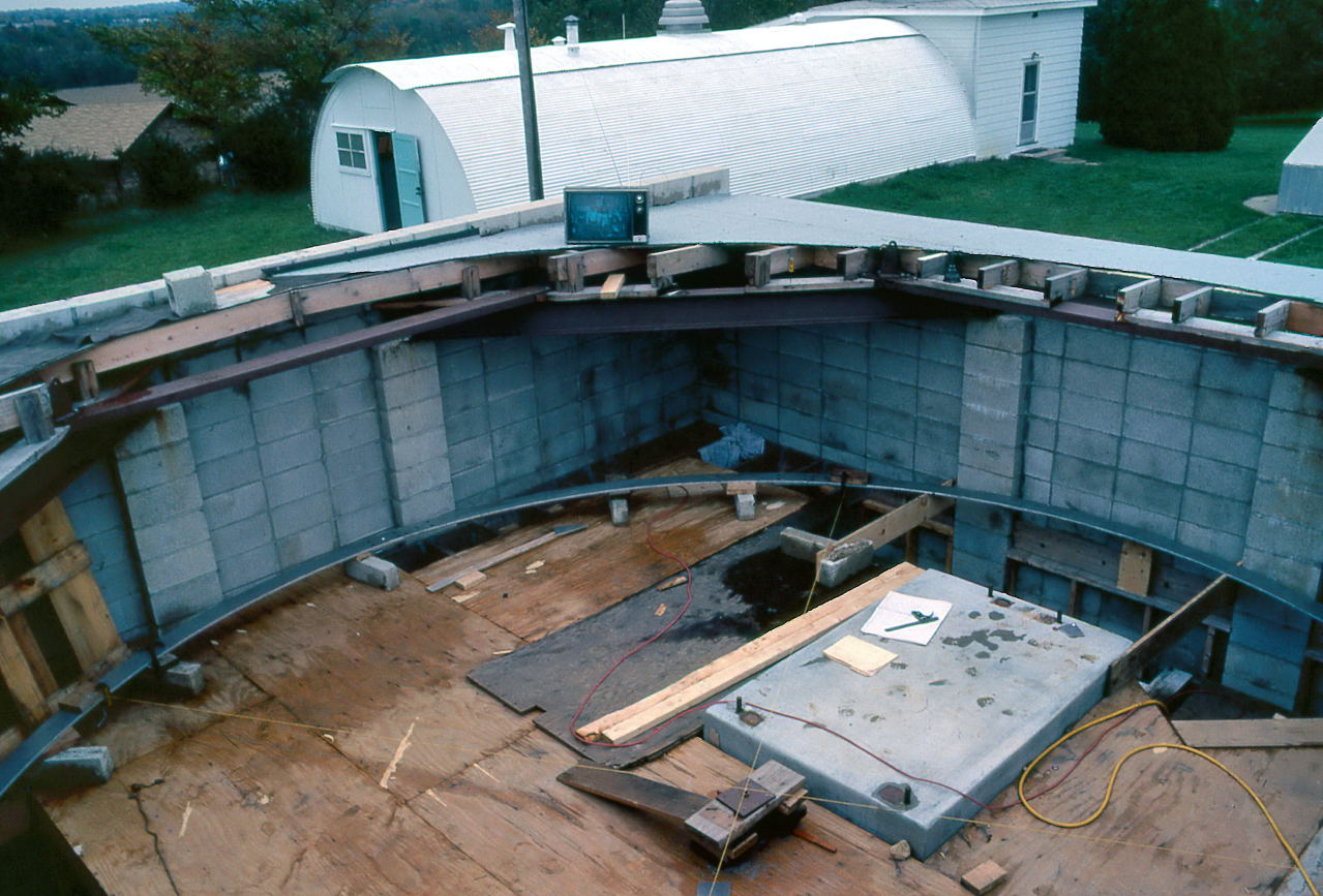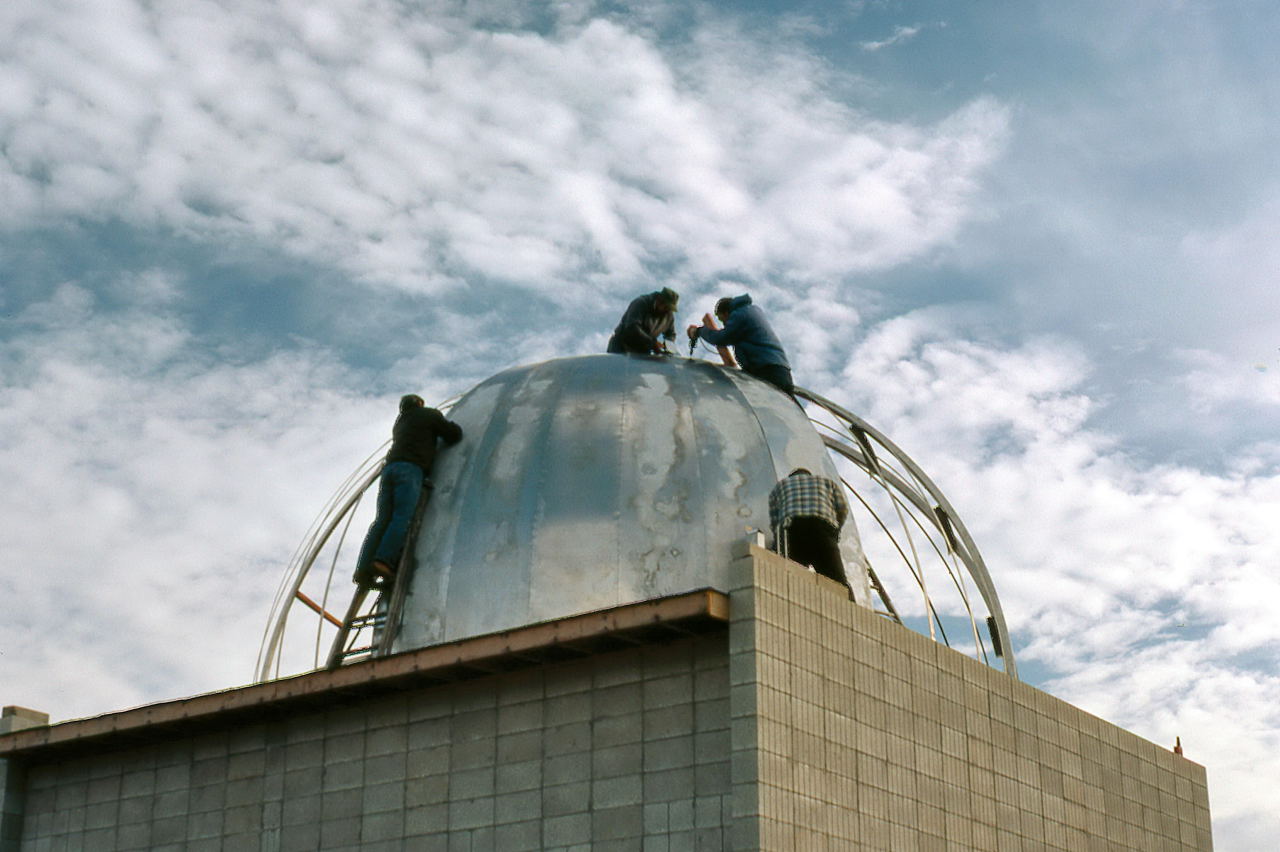 Historian Note: We have a lot of detail of the construction because of the participation of a handful of members who have given their first-hand accounts, two of those (John Aztalos and Jim Fanson) took many pictures, and because of decent entries made in the club log book. Much of the detail presented here are word for word entries from the Observatory Log Book.