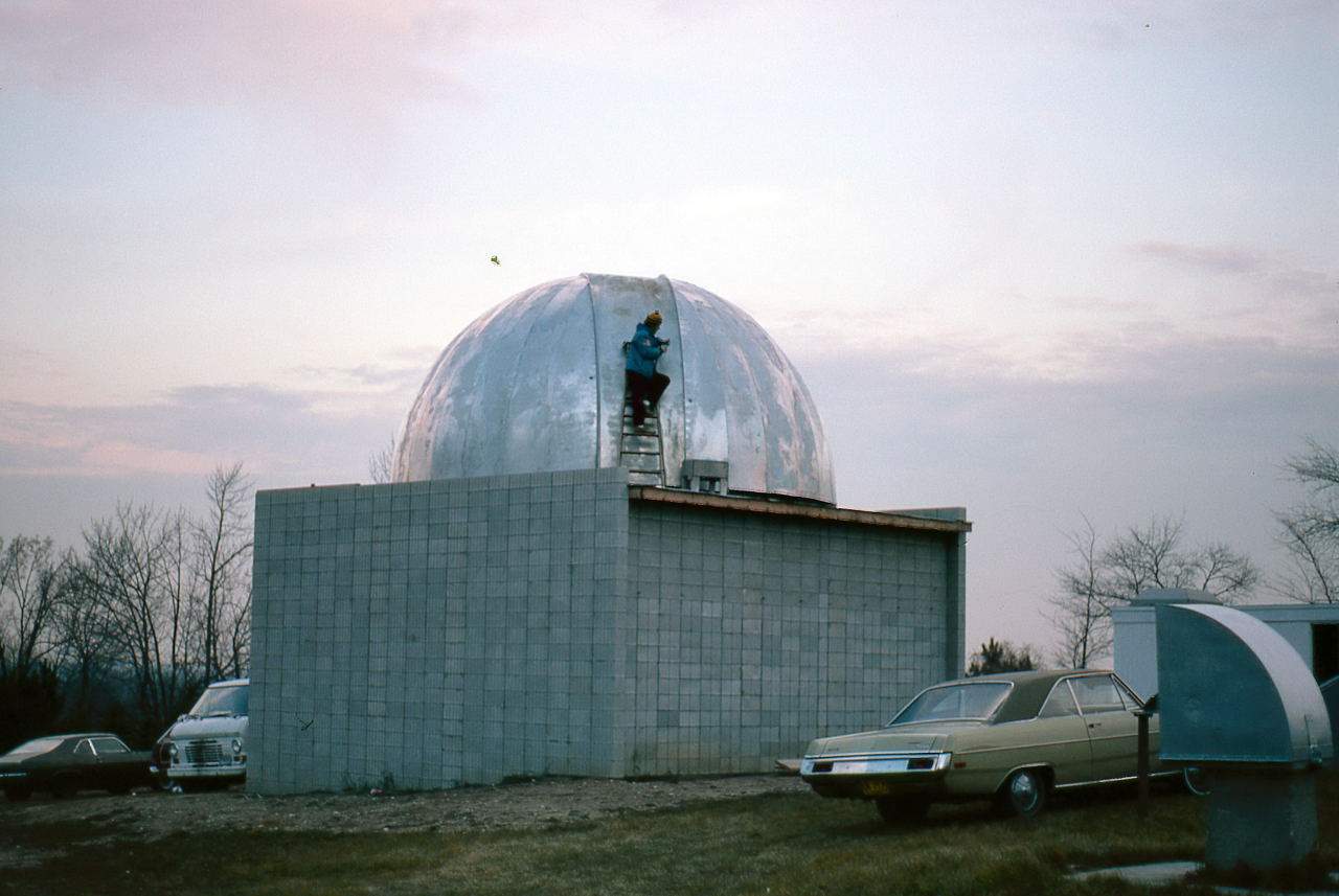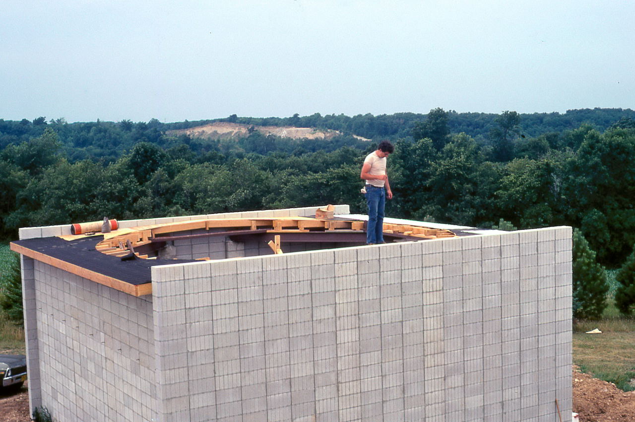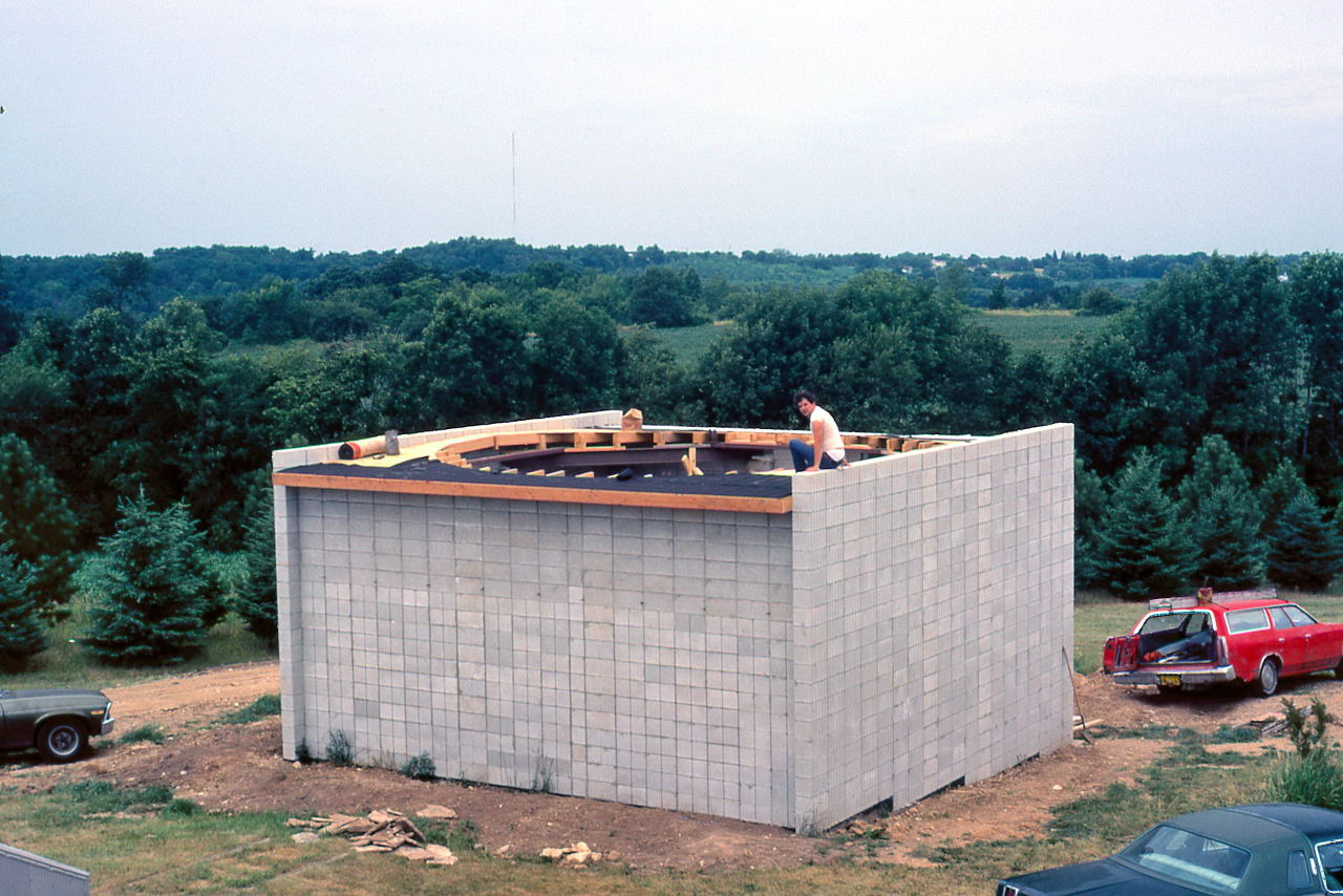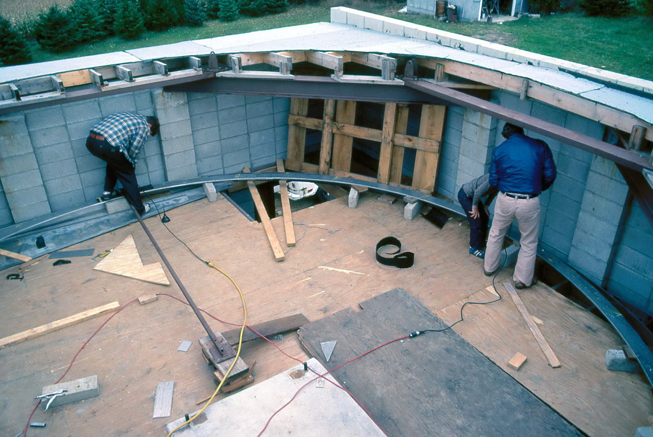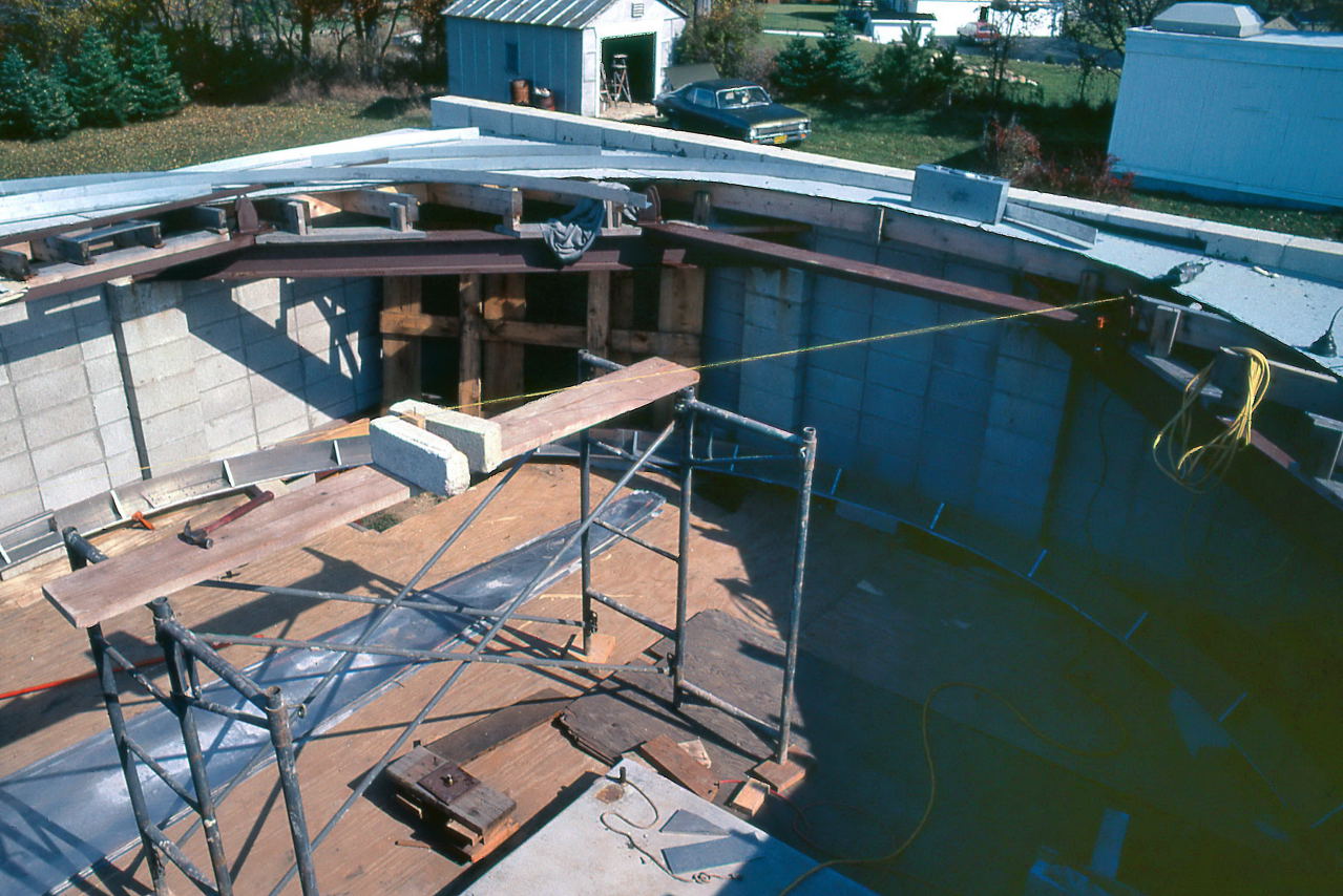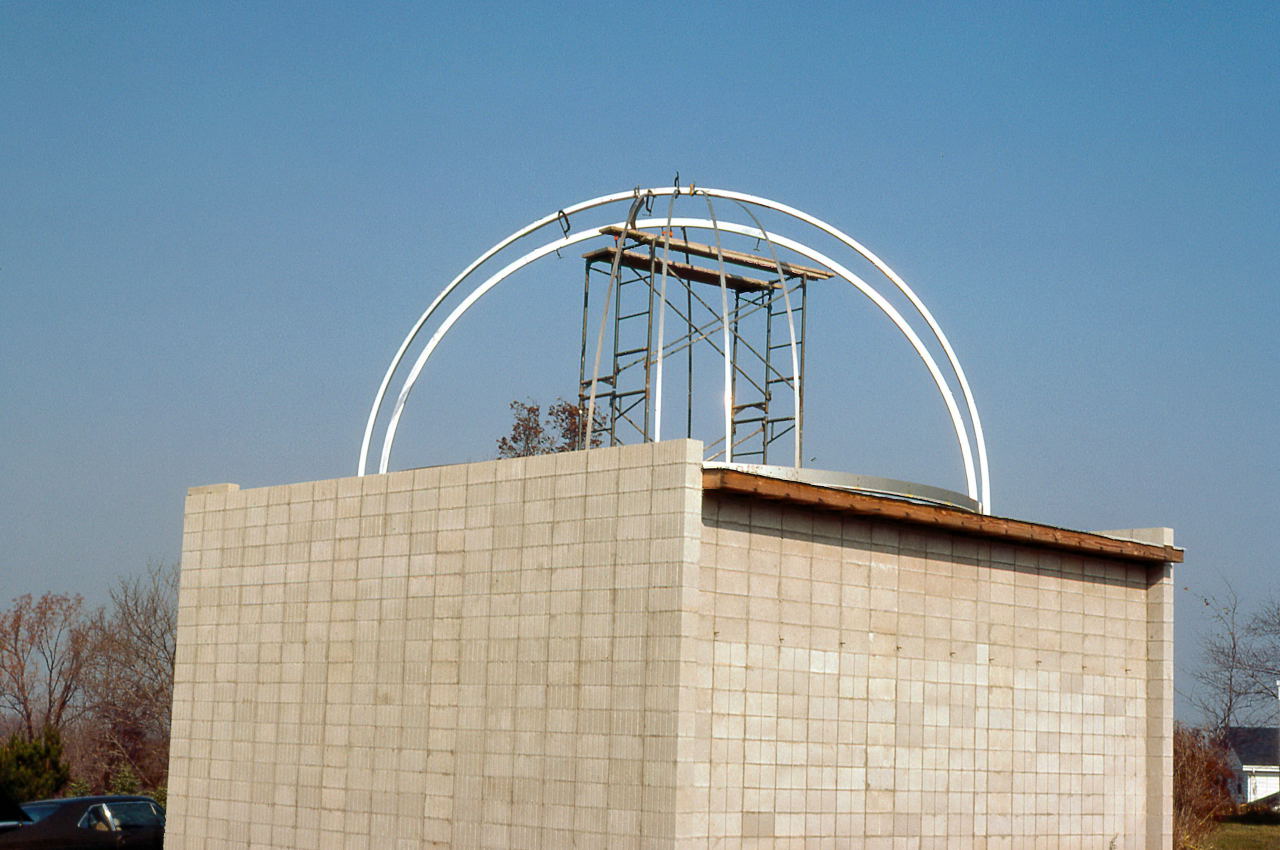 Historian Note: We have a lot of detail of the construction because of the participation of a handful of members who have given their first-hand accounts, two of those (John Aztalos and Jim Fanson) took many pictures, and because of decent entries made in the club log book. Much of the detail presented here are word for word entries from the Observatory Log Book.