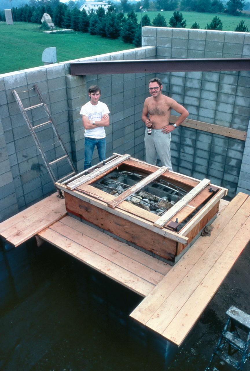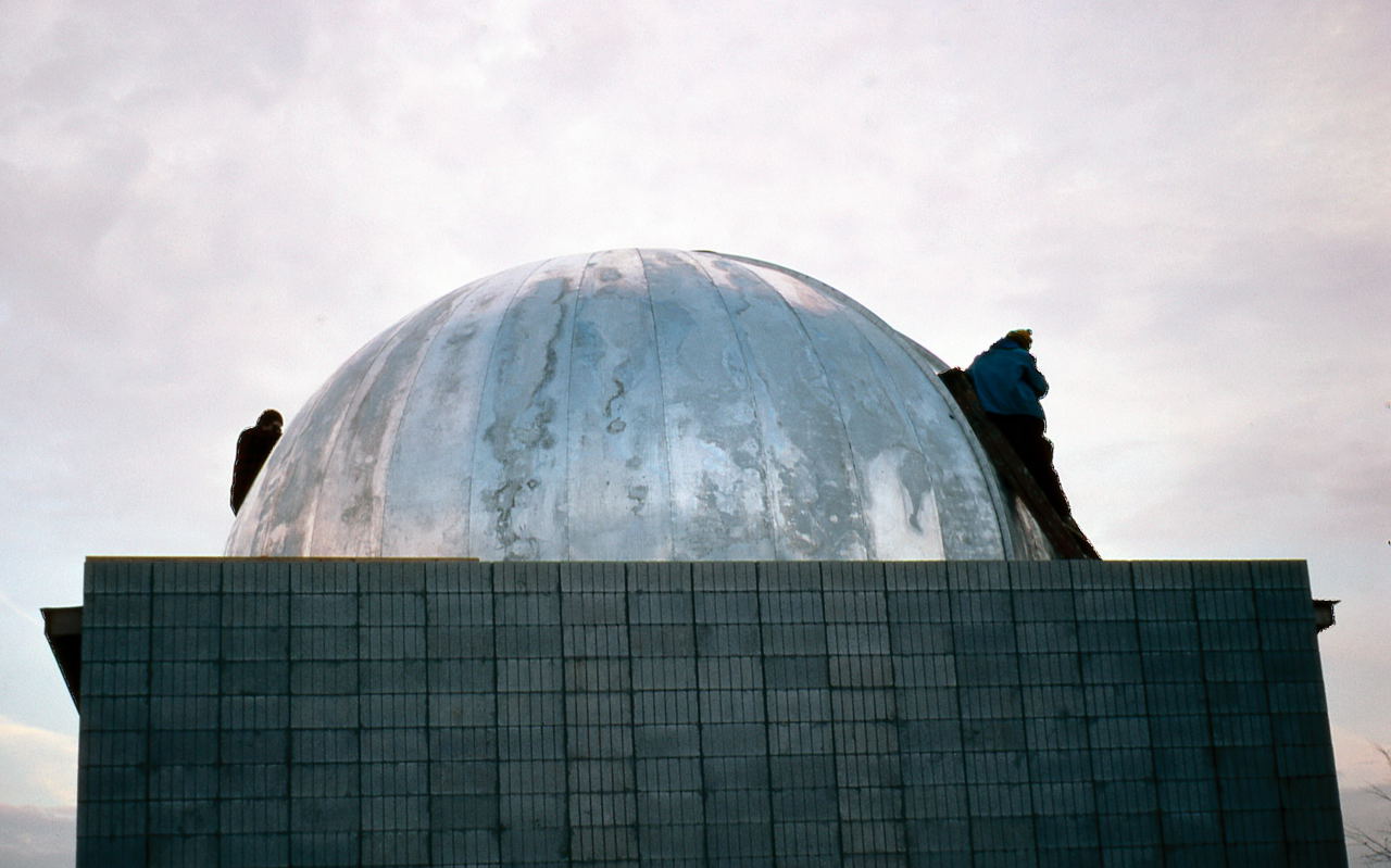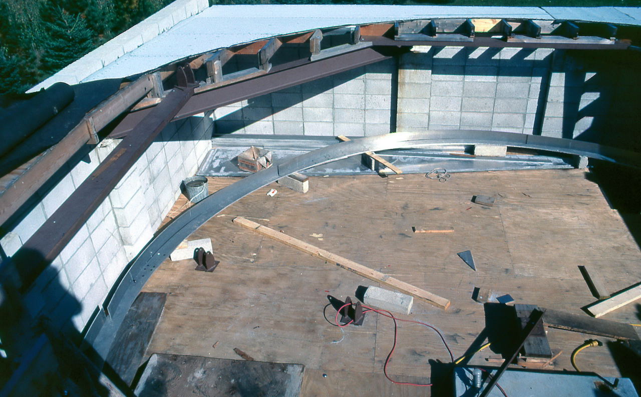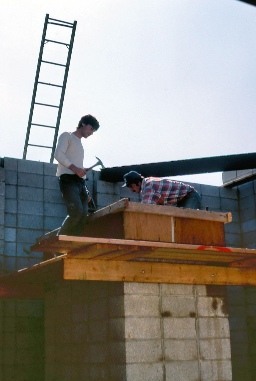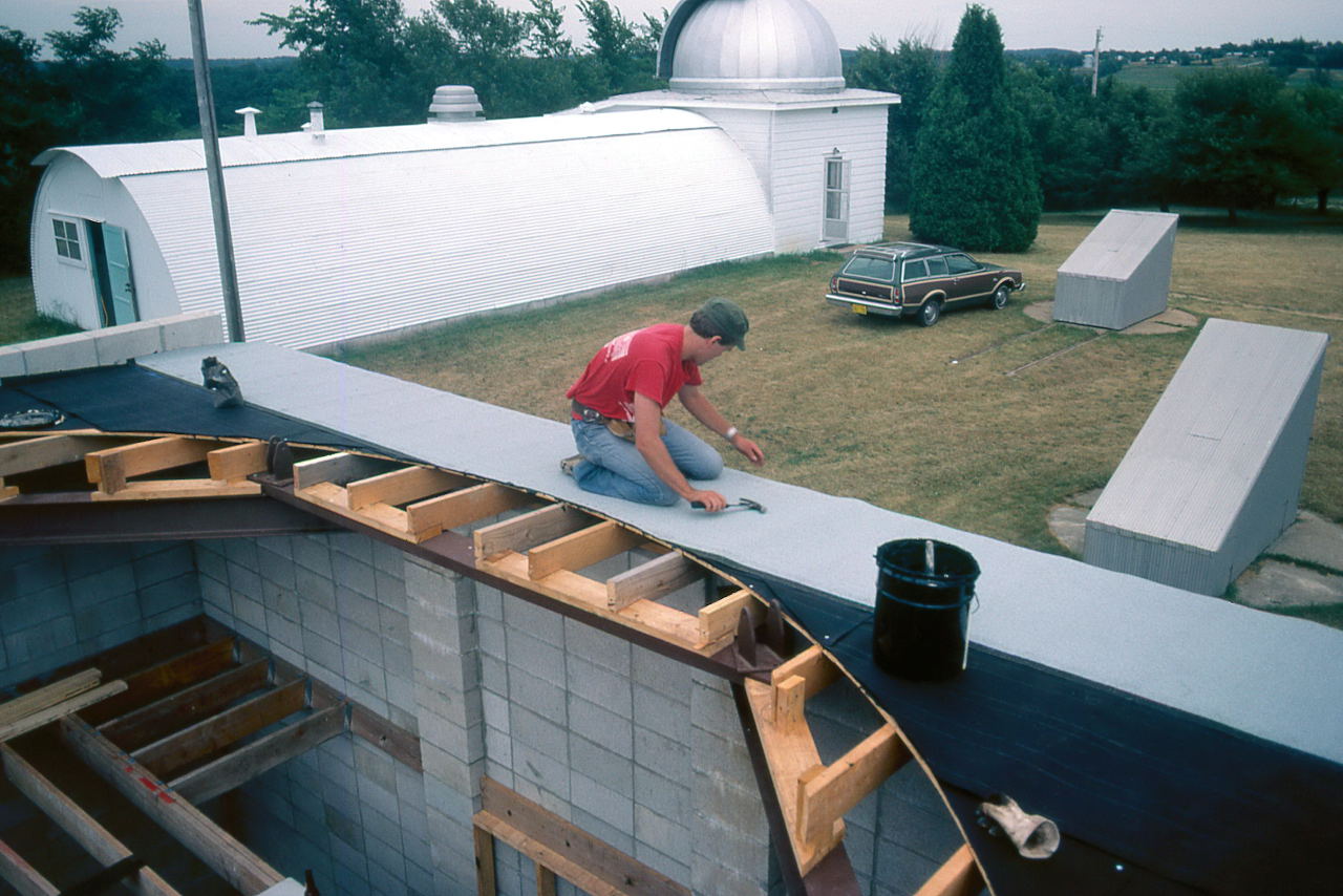 Historian Note: We have a lot of detail of the construction because of the participation of a handful of members who have given their first-hand accounts, two of those (John Aztalos and Jim Fanson) took many pictures, and because of decent entries made in the club log book. Much of the detail presented here are word for word entries from the Observatory Log Book.