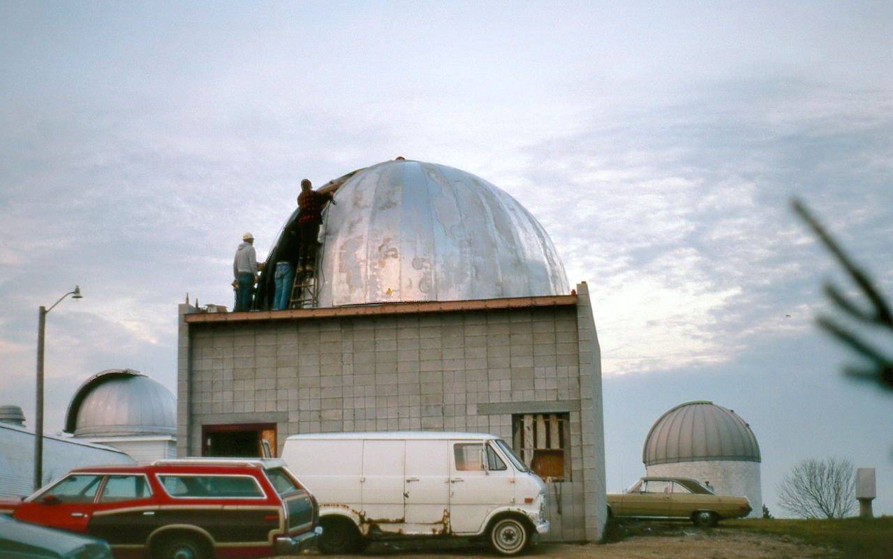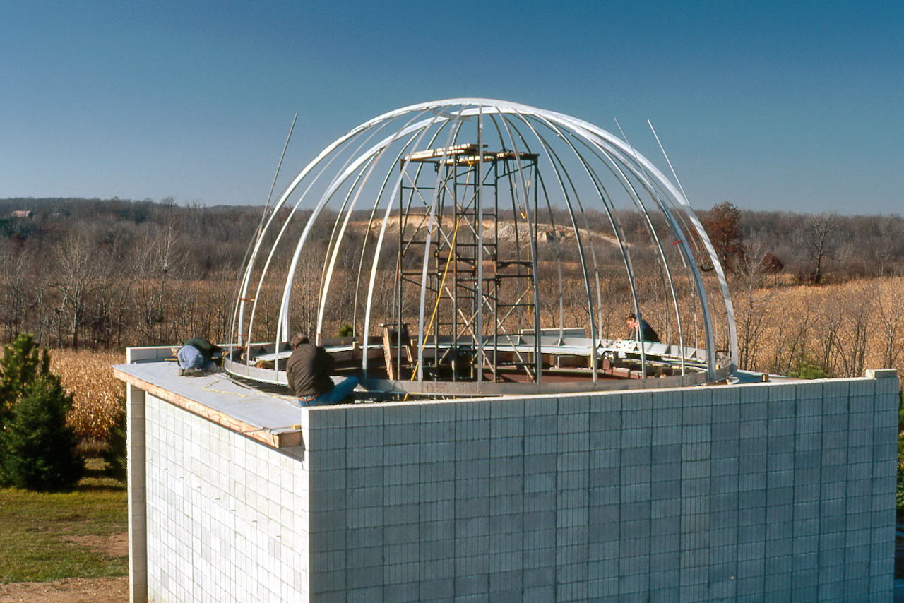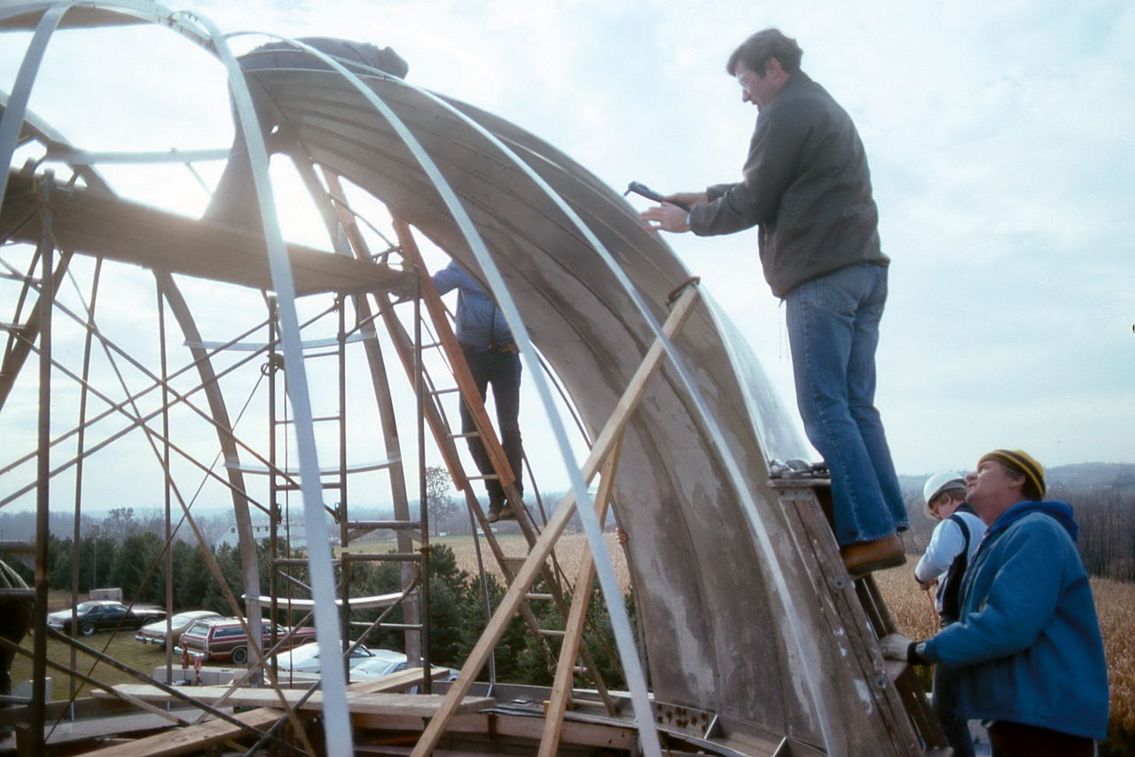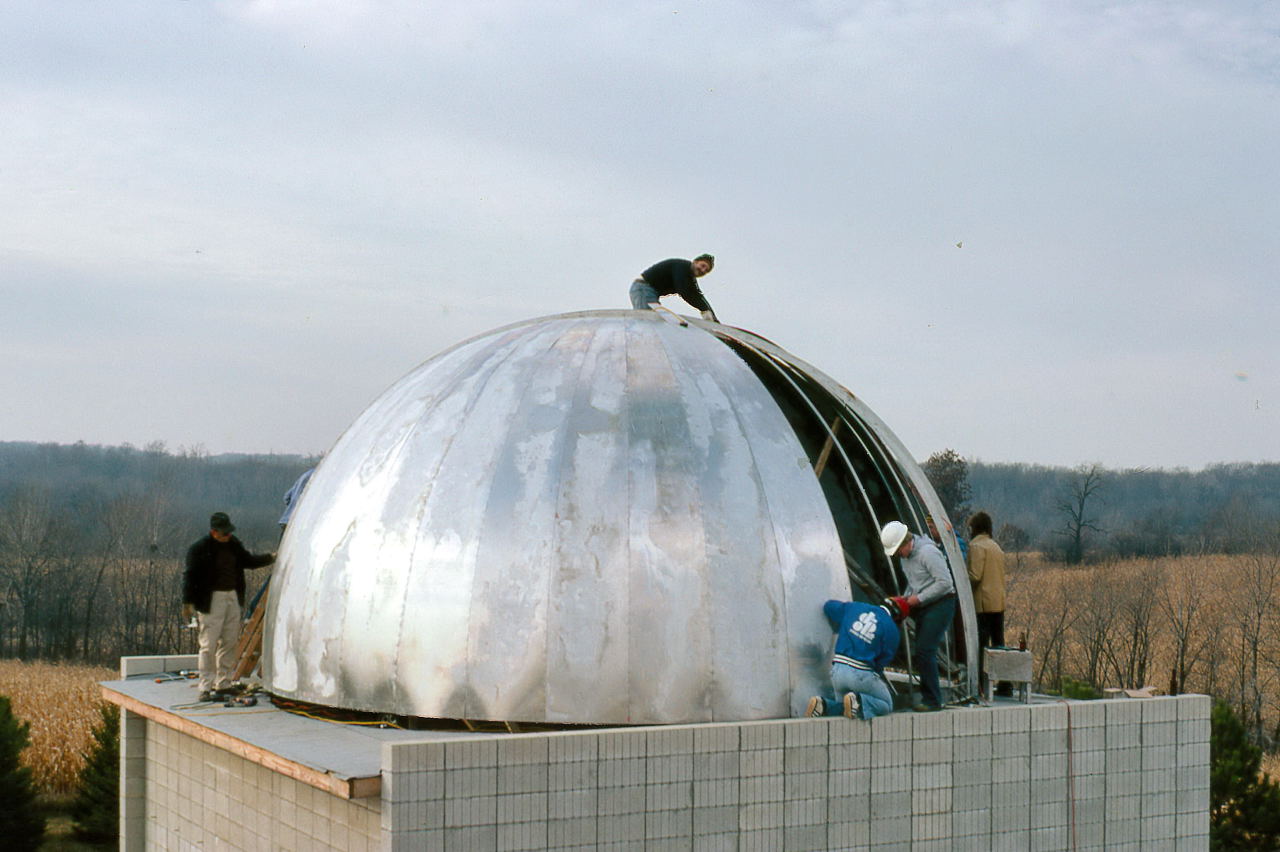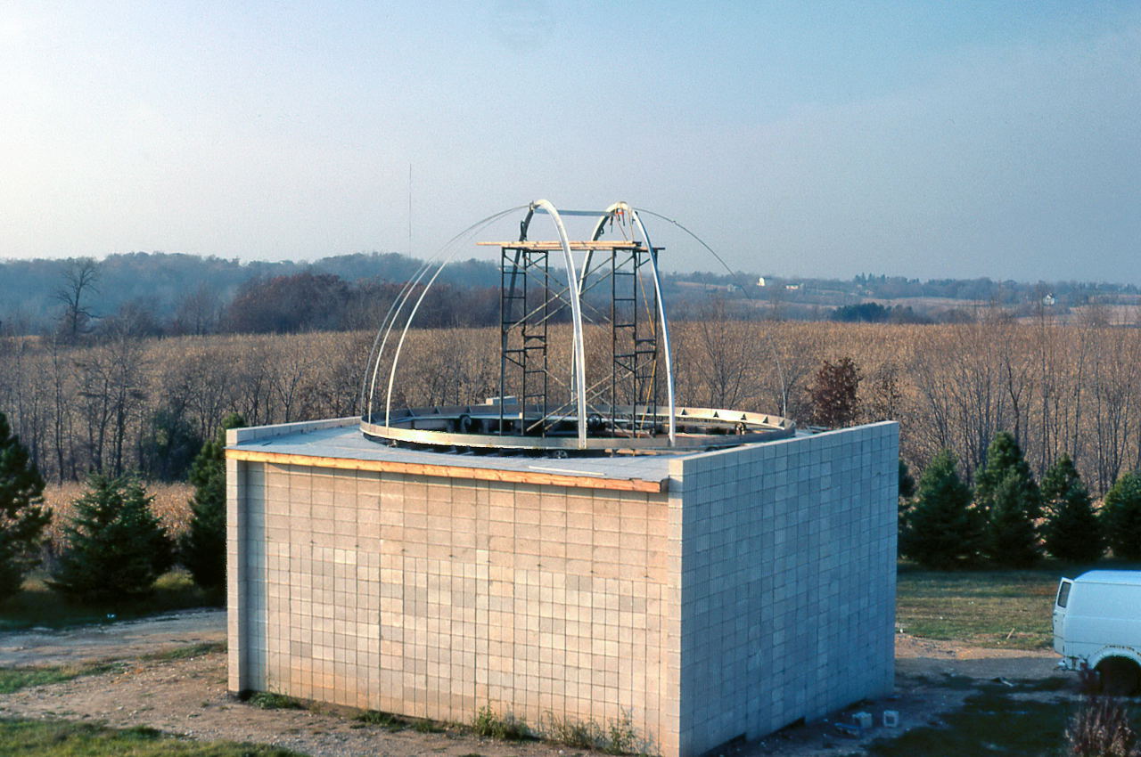 It wasn't as if the club didn't have some experience with dome building. We designed the A-Dome, but we had major help by having professional welders assemble it. For the B-Dome we took a major shortcut by getting a farm silo dome and having that company modify it. We then had to make a slit cover and we went with a retractable one which we will have over 10 years of difficulty making it work properly. Furthermore, these were just 14 foot domes and all the personnel involved in those projects were no longer there in Milwaukee. And the needed 22 foot dome was 2.5 times the area of the 14 foot domes.