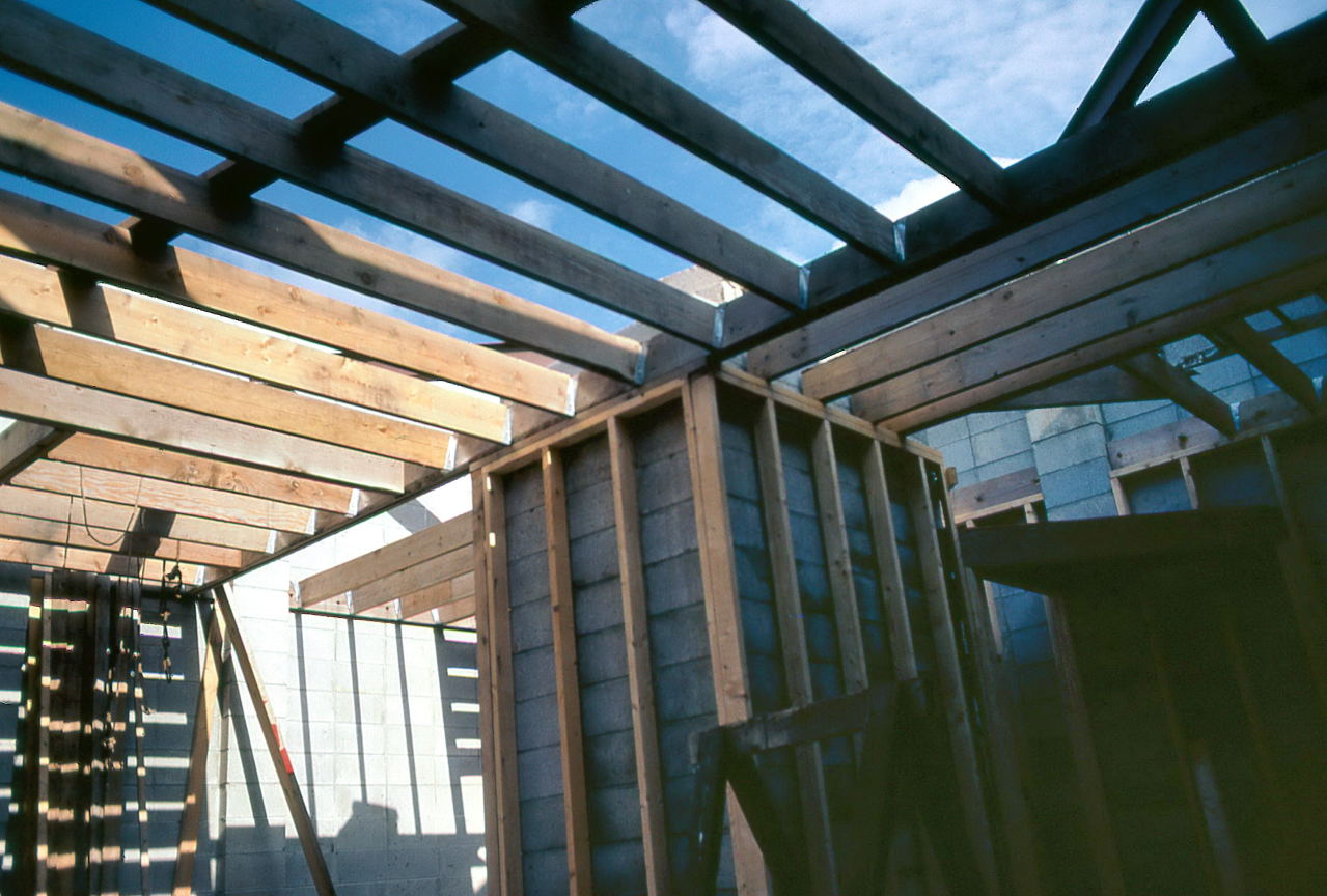 Jul 4 Samolyk, Hesseltine, Zych: Work on roof rafters.